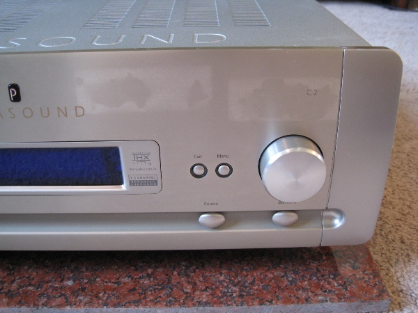 Parasound Halo C-2 Preamp/Processor. In good condition, except for a few minor scratches on the front and sticker marks (see pictures).